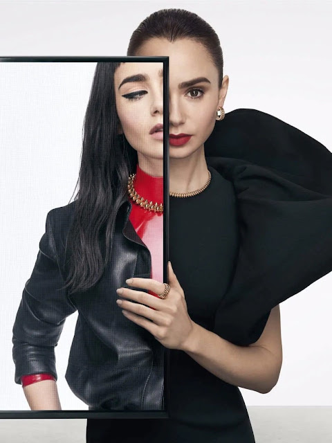 Cartier elige a Lily Collins para su campaña Clash de Cartier para 2022. Se cuenta una historia de dualidad a través de los anuncios de la marca de joyería de lujo, que presentan a la actriz modelando un aspecto de cuero más rebelde y un estilo más tradicional. Pulseras, collares, aretes y anillos con tachuelas se exhiben en la línea, que es famosa por las formas escultóricas que incorpora a sus piezas.